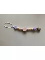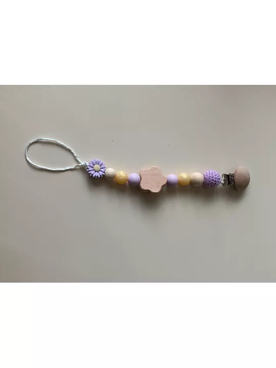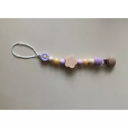 Attache tétine jaune et beige motif fleur